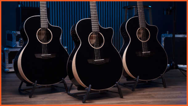 Designed as the ultimate “stage guitars,” with workhorse reliability and maximum performance capability, Faith Eclipse electro-acoustic guitars combine a classic blend of solid spruce tops with solid mahogany back and sides to ensure a superb sound, with an ideal blend of presence and full-bodied tone.