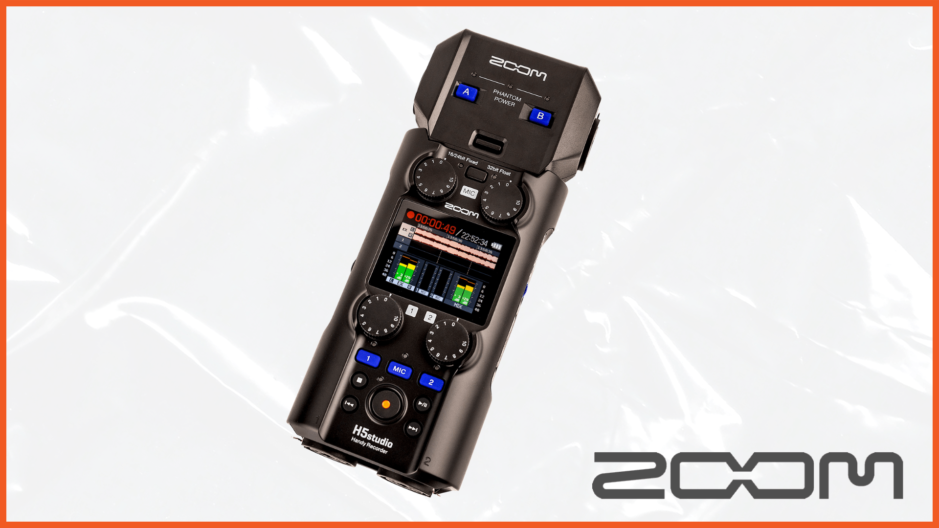 Zoom is pleased to announce the H5studio Handy Recorder. The new H5studio offers the best of both worlds with 32-bit float and dedicated gain knobs—no clipping and no need for post-production. Featuring the largest mic capsules ever on a Handy Recorder, the H5studio captures recordings with unmatched depth and clarity up to 140dB SPL with an impressive dynamic range of 132dB thanks to the mic preamps and dual AD converters derived from our flagship F-series recorders. And the “advanced look-ahead” limiters prevent distortion before it reaches your track.