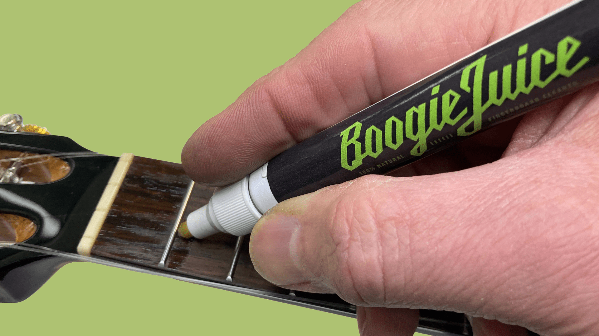 Boogie Juice is a mix of natural ingredients, including citrus oils, and has a patented delivery method – similar to using a felt pen, the oils are released by depressing the tip and “drawing” on the fingerboard surface. The tip is great for getting right up to the edge of the frets, and it won’t spill if you knock it over! It is suitable for all instruments with an unfinished wooden fingerboard – guitar, ukulele, mandolin, violin, banjo etc.