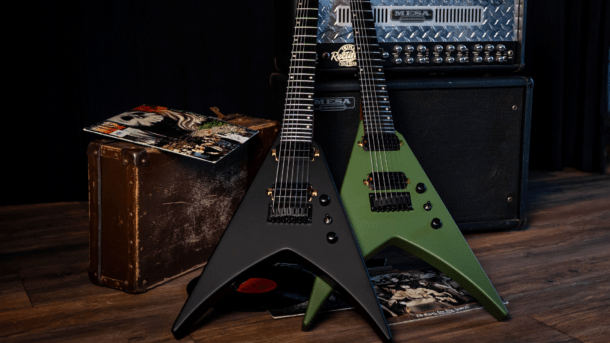 Spira’s V shape now comes in a 7-string format, with a 26.5” scale length designed to keep the low end tight and controlled. With dual Villain humbuckers and a sharp, modern feel, the V-407 is built for heavier riffing, lower tunings and players who want maximum visual impact. Available in Satin Black and Satin Green.