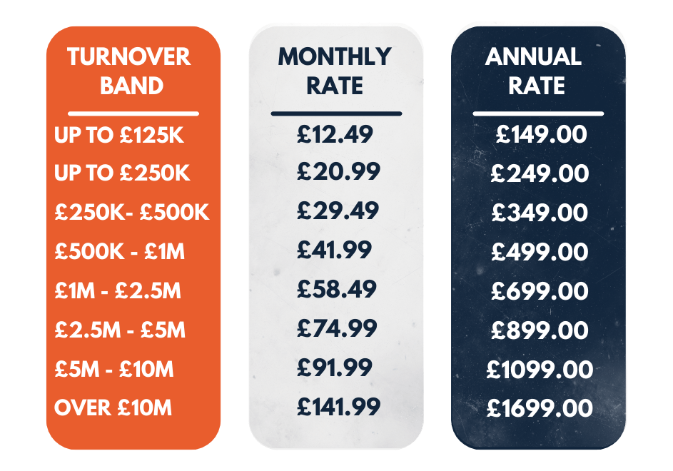 We offer a range of subscription tiers so your membership fee is based on the turnover of your business. Prices start from just £12.49 (+VAT) per month.